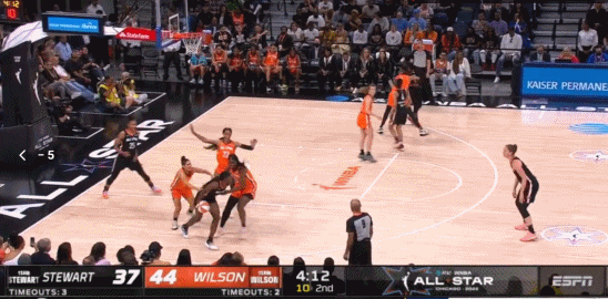 WNBA的首次扣篮则要等到2002年。在联盟成立第六年,洛杉矶火花队的丽莎-莱斯利——同时也是美国女篮传奇名宿——在对阵迈阿密索尔的比赛中快攻接球,狠狠将球砸进篮筐,随后张开双臂跑回后场,与队友相拥庆祝。