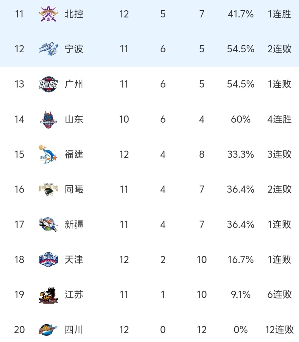 北京时间1月8日,CBA常规赛继续进行,浙江队客场95-60大胜广州,终结了对手的三连胜,目前浙江6胜6负,排名第8,吉林主场77-74险胜福建,紧随其后排名第9,北控81-79险胜四川,北控5胜7负排名第11,山西队103-99险胜天津,山西7胜5负,排名第6!