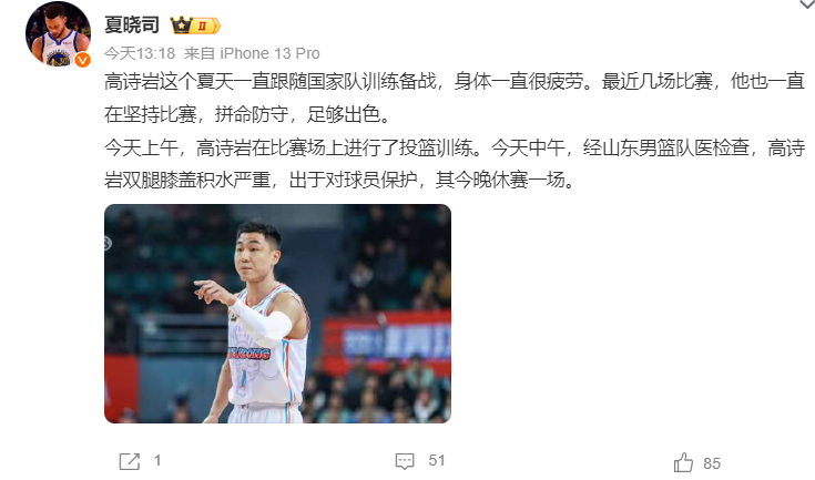 高诗岩因为双膝积液严重这场比赛轮休一场。