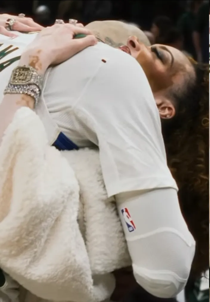 本赛季,温妮多次来到现场看球为库兹马加油助威,这也不禁让人猜测两人是否好事将近。在此前雄鹿绝杀黄蜂的比赛中,字母哥上演绝杀,在看到这一幕的时候,温妮-哈洛也是非常开心,赛后与库兹马甜蜜相拥。