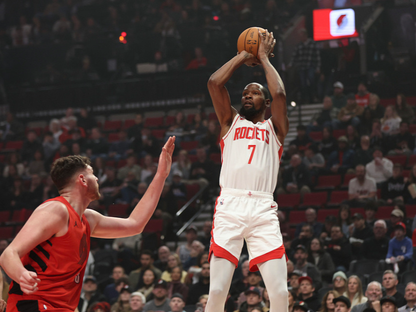 第三节成为火箭本场比赛的高光时刻,杜兰特单节独得12分,率队打出34-22的攻势,将领先优势扩大到13分。