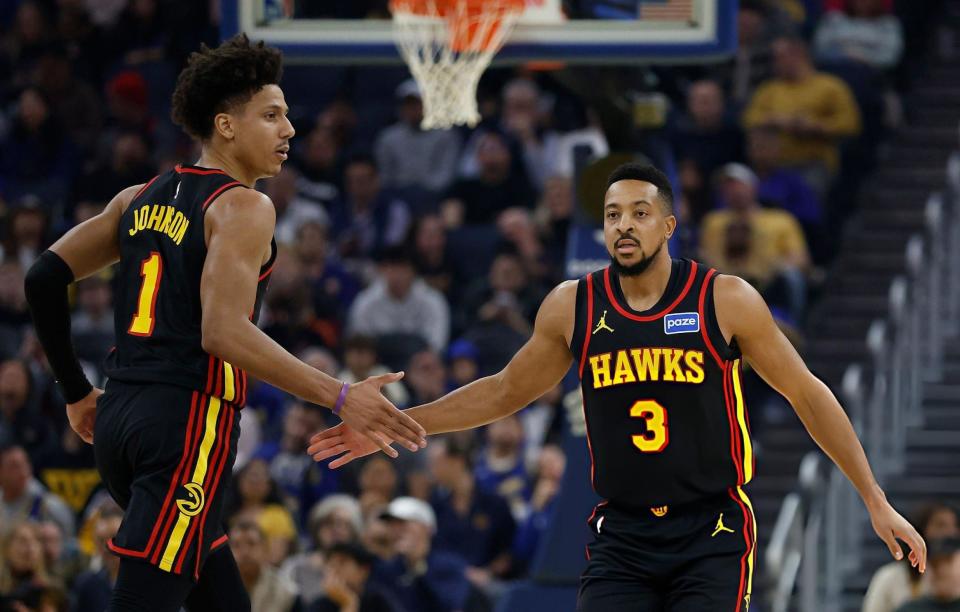 老鹰队-约翰逊23分11篮板6助攻,沃克24分,奥孔古18分12篮板7助攻,丹尼尔斯11分7篮板9助攻,肯纳德22分(三分7中6),麦科勒姆12分4助攻,基斯波特2分2篮板3助攻;