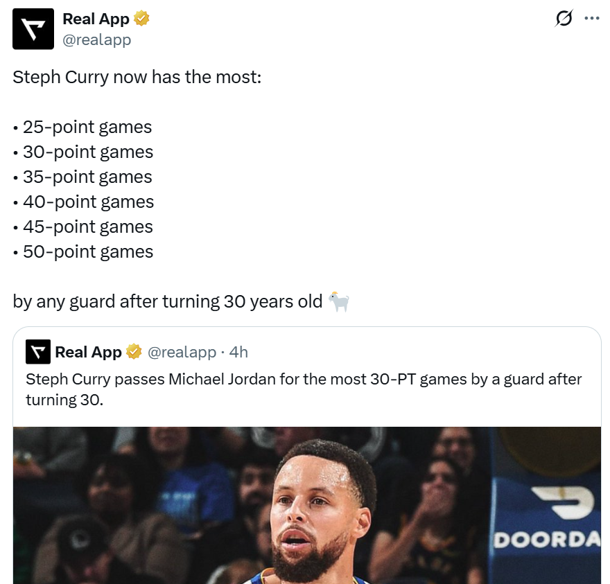 凭借这样的表现,库里30岁后第176场砍下30+得分表现,成功超越“篮球之神”乔丹升至NBA历史后卫第一。