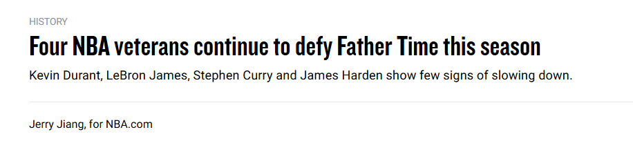 杜兰特、詹姆斯与哈登持续证明,年龄不过是个数字,而库里本人也正经历又一个生涯级的传奇赛季。一起来回顾本赛季至今,杜兰特、詹姆斯、库里和哈登的高光时刻——