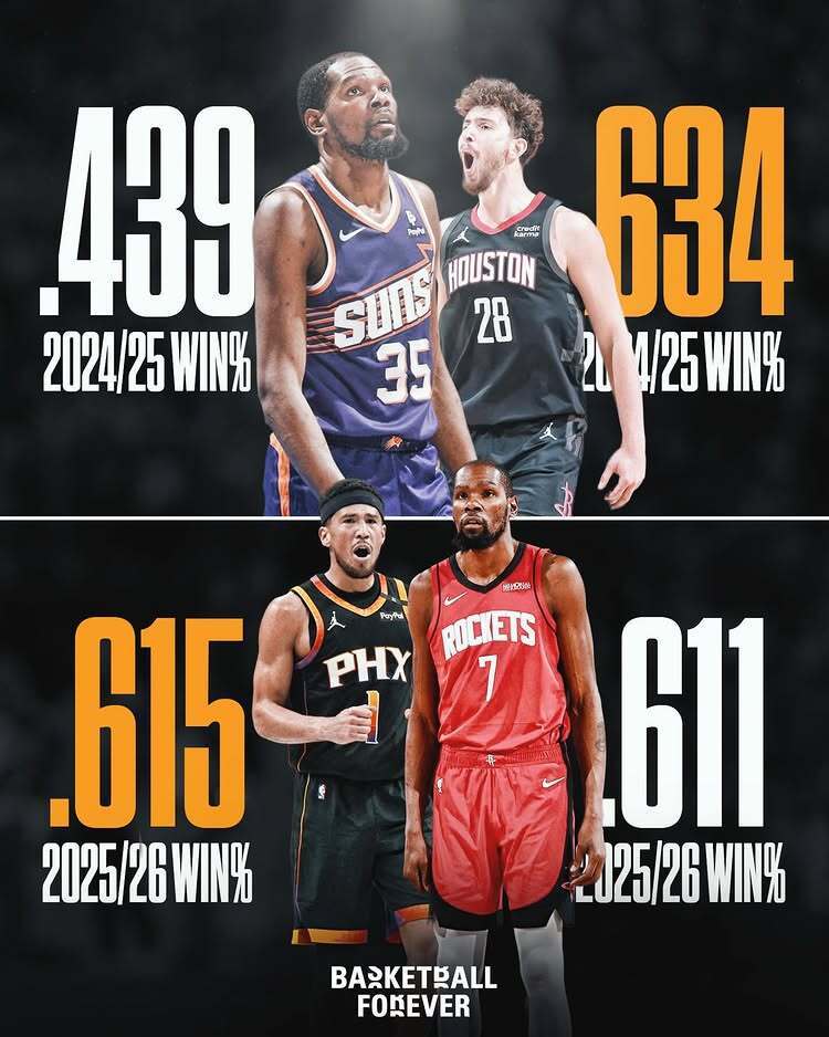 事情的起因与火箭队和太阳队的成绩有关。美媒Basketball Forever晒出太阳和火箭的战绩并配文:火箭队在杜兰特交易后不知怎么反而更差了,而太阳队却更好了 太阳近10战8胜2负,已经超越火箭升至西部第六位!