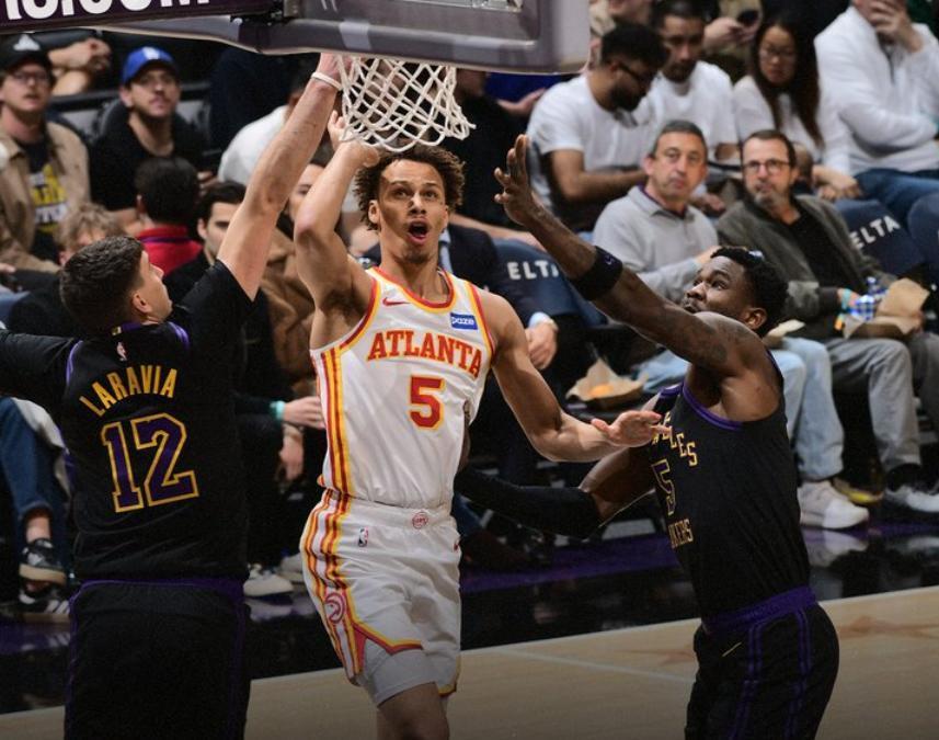 赛季场均能够贡献23.7+10.3+8.2华丽数据的杰伦约翰逊,面对防守能力并不强的紫金军团,在上半场彻底迷失了自我,10次出手只命中了2球,仅仅得到了6分,好在助攻依旧在线,半场送出了5次助攻,让两大新援麦科勒姆、基斯珀特和沃克得分全部达到了两位数,可惜老鹰自己的防守漏洞百出,让湖人半场轰下81分,带着21分的巨大优势,回到了中场更衣室。