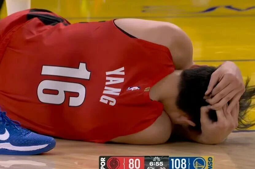 杨瀚森打NBA老是头部遭受重击,打勇士倒地争抢地板球过程中后脑勺撞到理查德膝盖,好在没有大碍,返回更衣室检查一会儿就重返赛场。