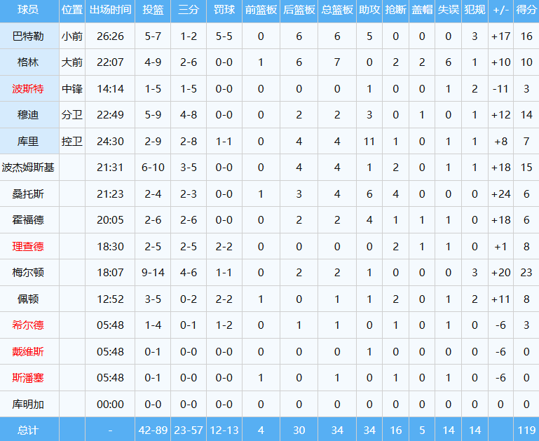 说回比赛,没有阿夫迪亚的开拓者,实力断崖式下滑,客场面对勇士毫无还手之力,97-119大比分落败。