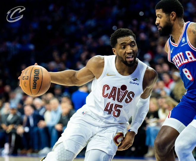 米切尔35+7+9打爆费城双枪,乔治14中7恩比德6失误,骑士双杀76人