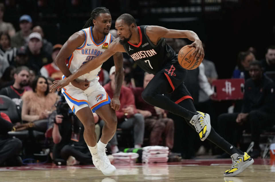 在杜兰特被牵制情况下,雷霆打出一波8-0高潮试图拉开分差,杜兰特跳投命中为火箭止损,杜兰特连续冲筐获得罚球机会,拒绝雷霆扩大领先优势到双位数。但是火箭在防守端无法阻挡亚历山大,落后雷霆7分进入下半场。杜兰特上半场仅13中3得到10分。