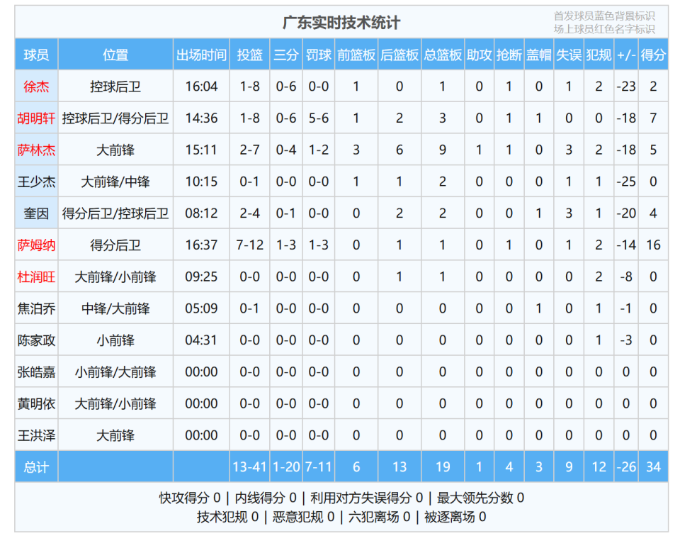 1、开局6-26,广东队全员打铁。第一节比赛,上海队上来就打了广东队一波26-6的比分,早早就建立了20分的优势。在此期间,广东队进攻不行,防守也不行。比赛才开始几分钟,就已经确定了胜负,这是怎么回事?广东队要故意输球?