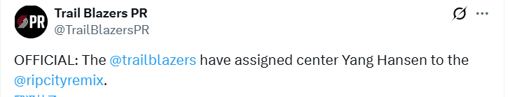 开拓者官宣下放杨瀚森:今日再为混音出战蓝队 上一场22分7板3助