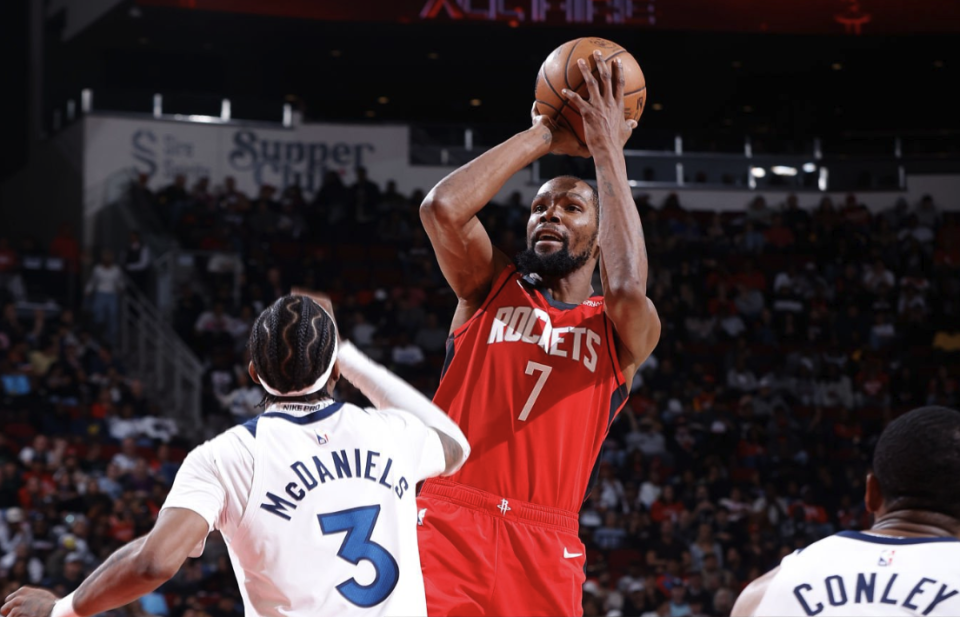 火箭背靠背出战,由于球队此前下半场崩盘不敌雷霆,火箭很早就换下杜兰特等主力,希望留存体力迎战森林狼,力争在没有爱德华兹的对手手中避免连败。首节比赛,杜兰特开局就遭到对手包夹,首次出手就被戈贝尔封盖,前3次出手全部打铁告终。不过他很快调整状态,命中三分取得首次运动战进球,个人连得5分。