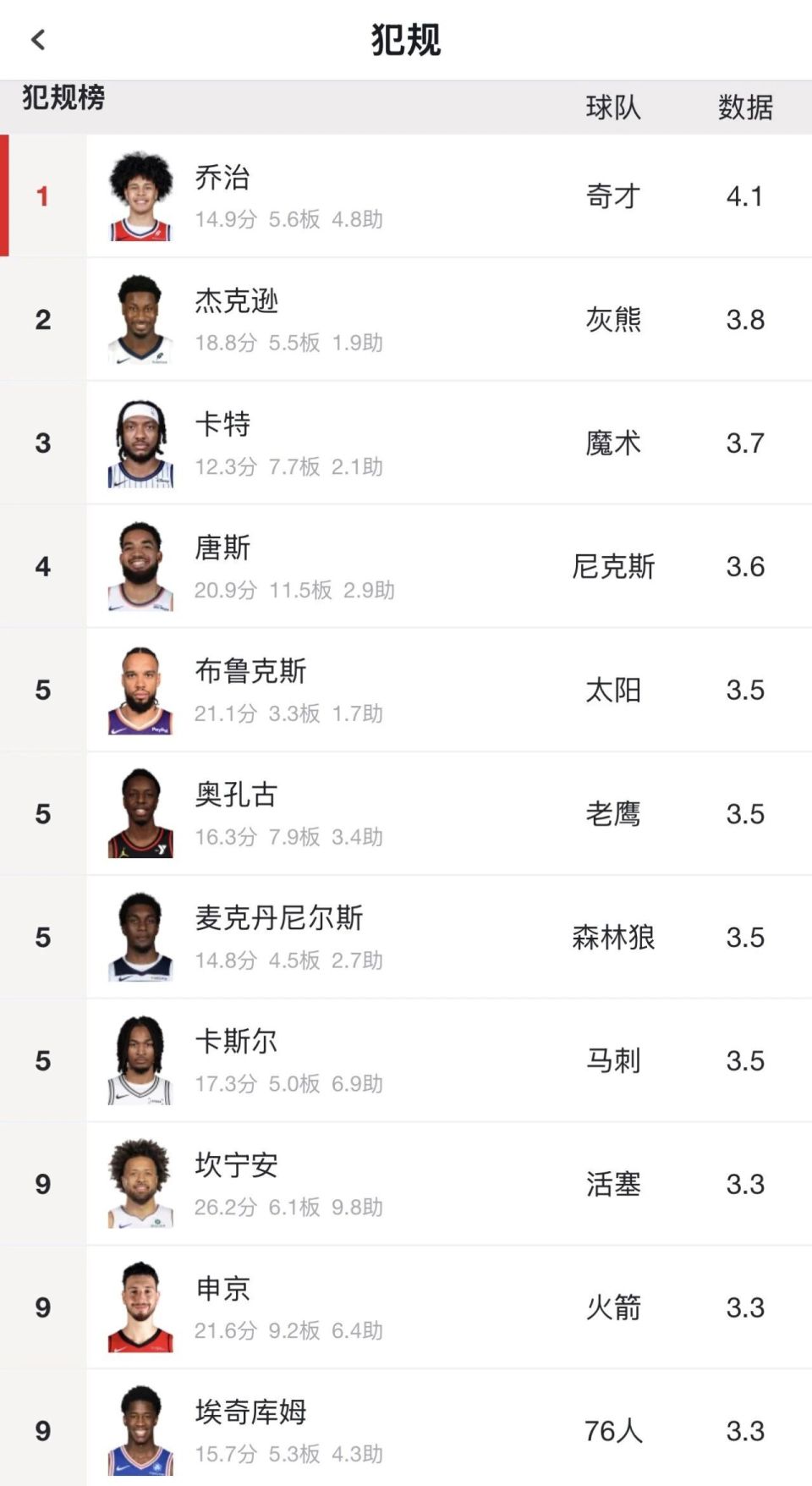 NBA生涯至今,3J场均只有5.5个篮板球,最高的一个赛季场均6.8篮板,最少的一个赛季场均4.6篮板。生涯场均3.7次犯规,最少的一个赛季场均3.5犯规,最多的一个赛季场均4.1犯规。本赛季3J场均3.8次犯规,联盟第二多!