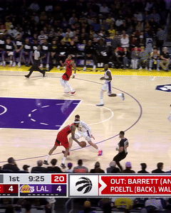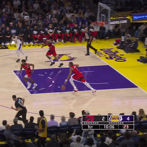 易边再战,湖人一波9-3扩大领先优势,之后英格拉姆和奎克利带队11-3反超比分并且打停比赛;比赛继续,东契奇和詹姆斯连续得分止住颓势,巴恩斯中投得分,两队交替领先打得十分胶着,打着打着猛龙进攻断电,八村垒和詹姆斯连中三分,莫格博扣篮,詹姆斯助攻艾顿暴扣,八村垒再中三分,湖人一波攻势扩大领先,三节打完湖人87-80领先7分。