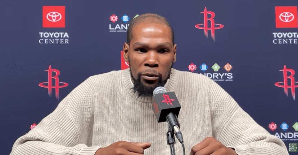 虎扑01月19日讯 今日NBA常规赛,休斯顿火箭队以119-110的比分击败新奥尔良鹈鹕队,在赛后采访中,火箭球员凯文-杜兰特分享了自己升至NBA历史得分榜第六位的感受。杜兰特表达了对前纪录保持者德克-诺维茨基的敬意,认为能与这些篮坛传奇并列是职业生涯的荣幸,并特别感谢了多年来支持他的团队和家人。