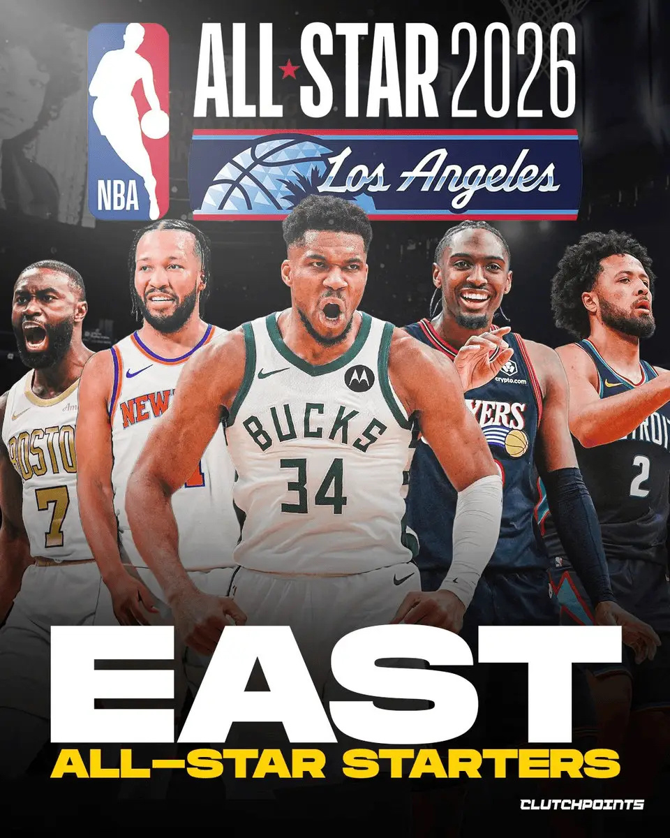 北京时间1月20日,NBA官方公布了2026年NBA全明星首发阵容。东部五人为:布伦森、字母哥、马克西、坎宁安、杰伦-布朗;西部五人为:东契奇、约基奇、文班亚马、亚历山大和库里。