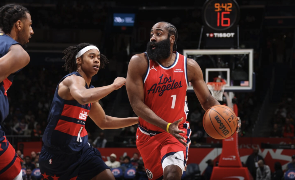 哈登突破上篮,成功获得全场的首次运动战进球。虽然奇才后续打出一波7-0的进攻高潮,但哈登迅速妙传洛佩斯止损,随后连续走上罚球线5罚全中,成功为快船抹平分差。首节比赛结束,两队比分持平,哈登单节9罚全中得到11分2篮板5助攻。