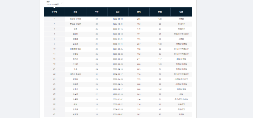 特此声明:数据分析依据为官方发布内容。为更客观呈现各队年龄分布情况,外援年龄不计入统计范围。