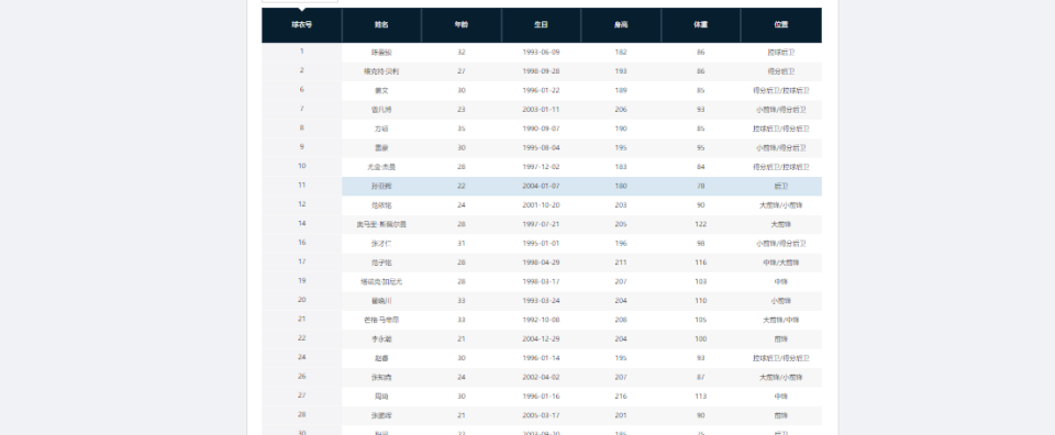 广东男篮的16位国内球员,年龄在24-29岁正值当打之年的球员有9位,29岁以上的0人,23岁以下的新星有7位。