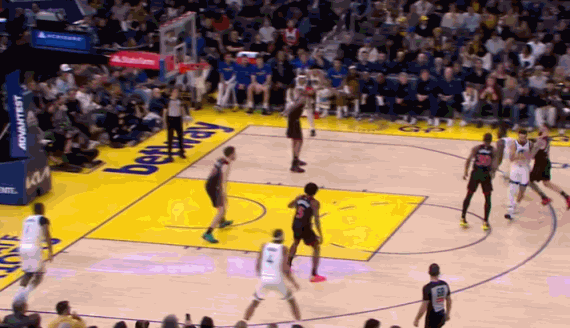库里第6次三分出手终于命中,连续84场比赛命中三分球!