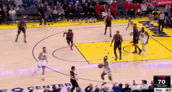 上半场,猛龙三人得分上双,奎克利18分2篮板3助攻,巴恩斯14分4篮板6助攻,马穆凯拉什维利11分8篮板3助攻。勇士只有库里一人得分上双,他得到12分,投篮13中5,三分6中1。