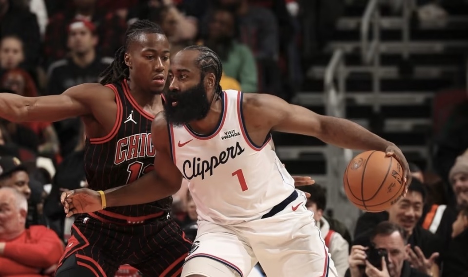 数据不会骗人,先看哈登。25投9中,三分9中3,拿24分5篮板6助攻,看着数据还行,但6个失误太致命,进攻效率也低得离谱。不过也能理解,伦纳德缺阵,哈登被公牛疯狂包夹,进攻空间被锁死,加上连续客场奔波,明显能感觉出他的疲惫感,手感差也是没办法的事,单核带队确实难。
