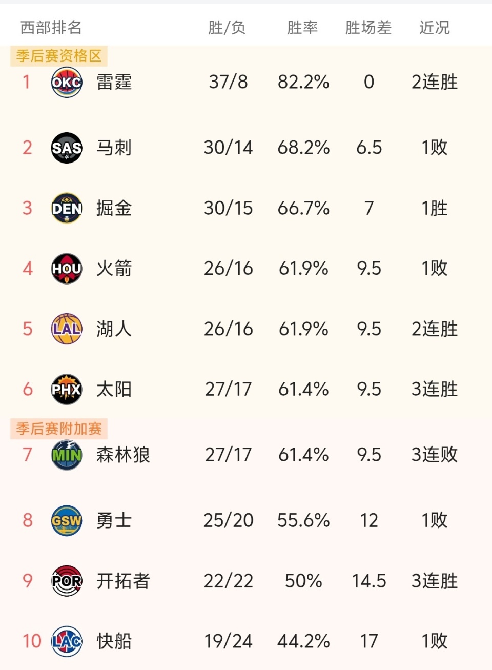 随着掘金107-97赢球,火箭加时惜败,NBA最新积分榜出炉:火箭第4!