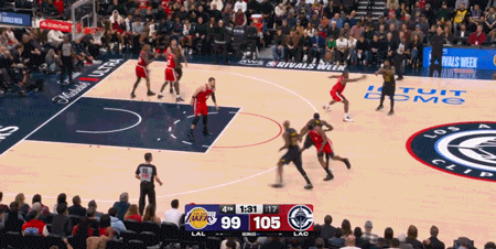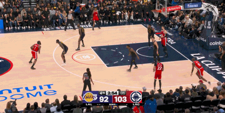 上半场打完,快船64-47领先湖人17分。快船两分球29中20,命中率高达69%。湖人罚球数10-3领先快船,篮板球16-24,助攻7-12。第三节开始,快船最多领先到26分。快船领先太多有点松懈了,湖人轰出14-3迫近分差。
