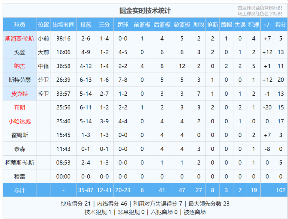 本场比赛,字母哥打了32分钟,8投4中,罚球16中14,拿到22分13篮板7助攻4失误,正负值+6。雄鹿上一场102-122不敌雷霆,字母哥同样出战32分钟,11投8中,罚球6中3,得到19分14篮板7助攻1抢断。这两场加起来只出手19次。