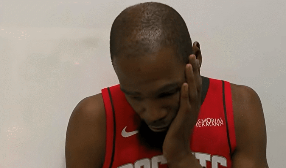 赛后,火箭球员凯文-杜兰特接受了记者采访。