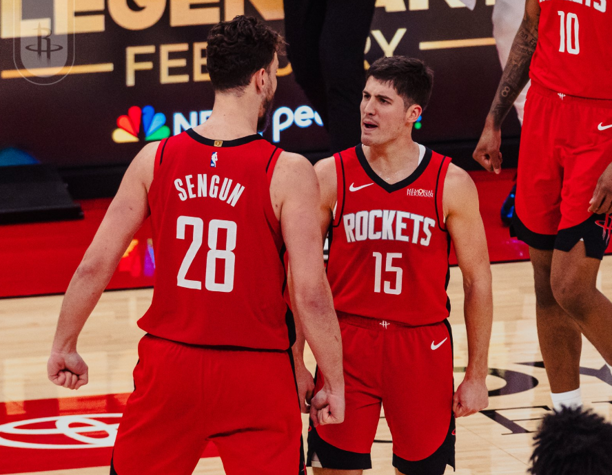 而申京三分球命中率29%,阿门19%,小贾34%,但只要这三人有至少两人在场,火箭进攻效率直线下降。我就举一个例子对比:当杜兰特+谢泼德+小贾三人在场时,火箭百回合赢对手6.5分,约等于火箭本赛季净效率值(+6.3);如果再加上一个申京,四人组百回合输对手2.9分!显然,问题出在申京这里。本赛季申京出场的比赛,火箭赢球线对应个人数据是:场均21分9.3篮板6.3助攻,球权占有率26.4%;输球线对应个人数据是:场均21.5分8.4篮板6.6助攻,球权占有率是27.9%。先得出一个结论:申京不能多占球权。
