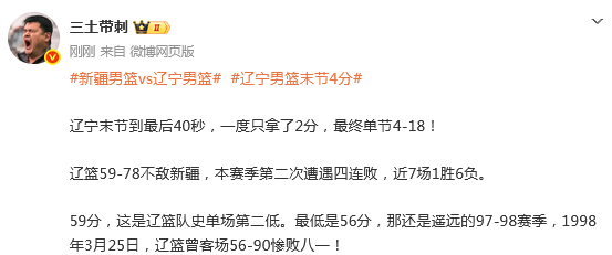 辽宁单节4分惨负新疆引热议!球迷狂刷官媒“输得脸都不要?”