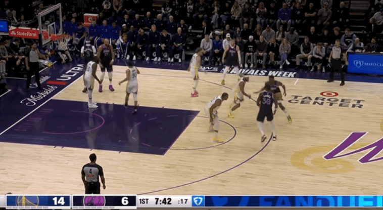 末节比赛开始,迪文琴佐三分命中,库里个人连得5分,海兰德和兰德尔罚球手感不佳合计仅5中2。库里上篮得手,穆迪和爱德华兹对飙三分,库里2罚全中。森林狼连得6分,霍福德和理查德连续上篮得手,迪林汉姆三分命中。眼看着双方分差始终在20分左右徘徊,森林狼在比赛还剩下5分10秒换下全主力,正式宣告放弃比赛,库里提前退场返回更衣室为背靠背对决做准备,最终勇士客场取得一场大胜。