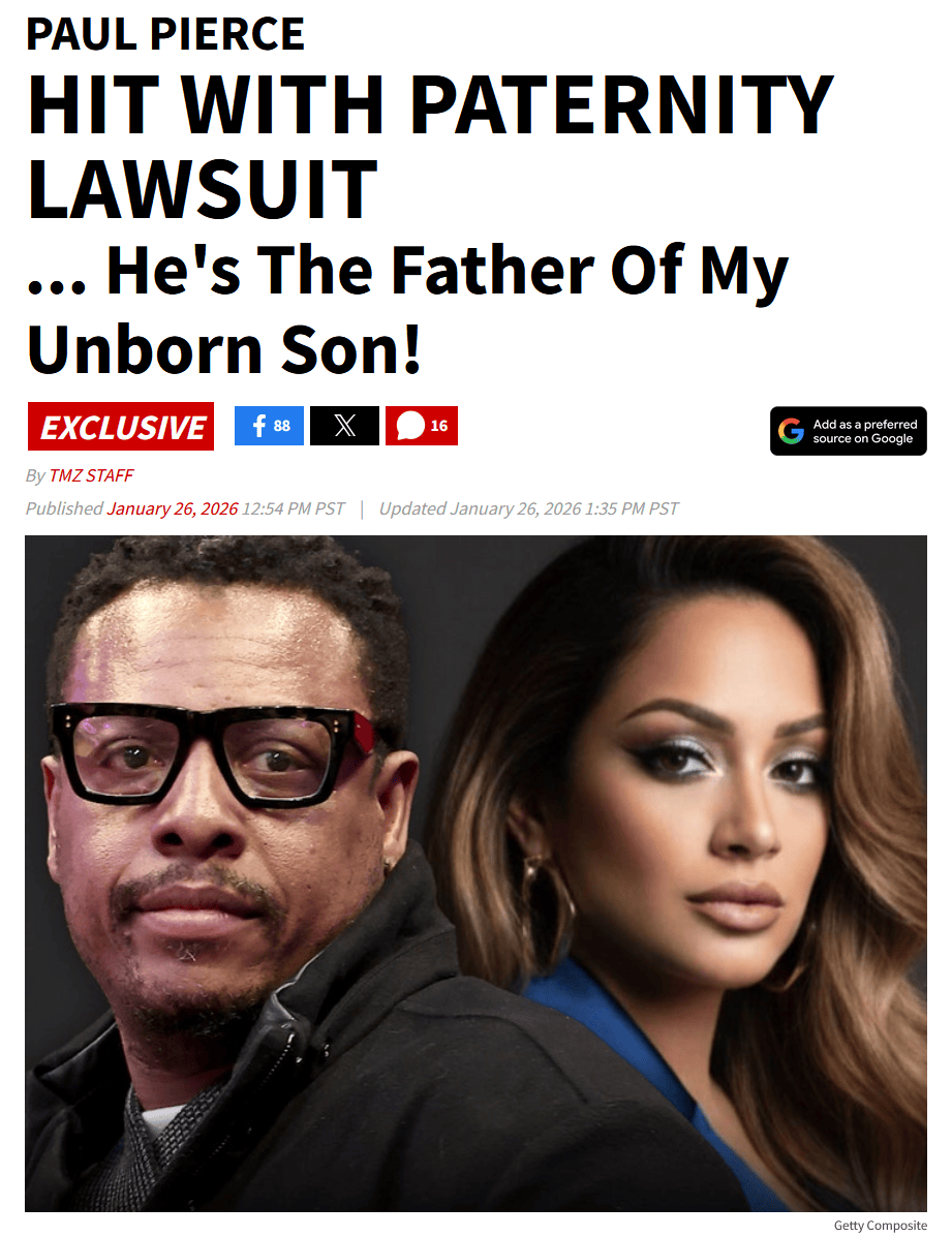 北京时间1月28日,NBA常规赛继续进行。前NBA巨星保罗-皮尔斯近期深陷场外争议,他遭到洛杉矶一名女子起诉,对方称皮尔斯为自己腹中孩子的生父,并要求进行DNA检测。