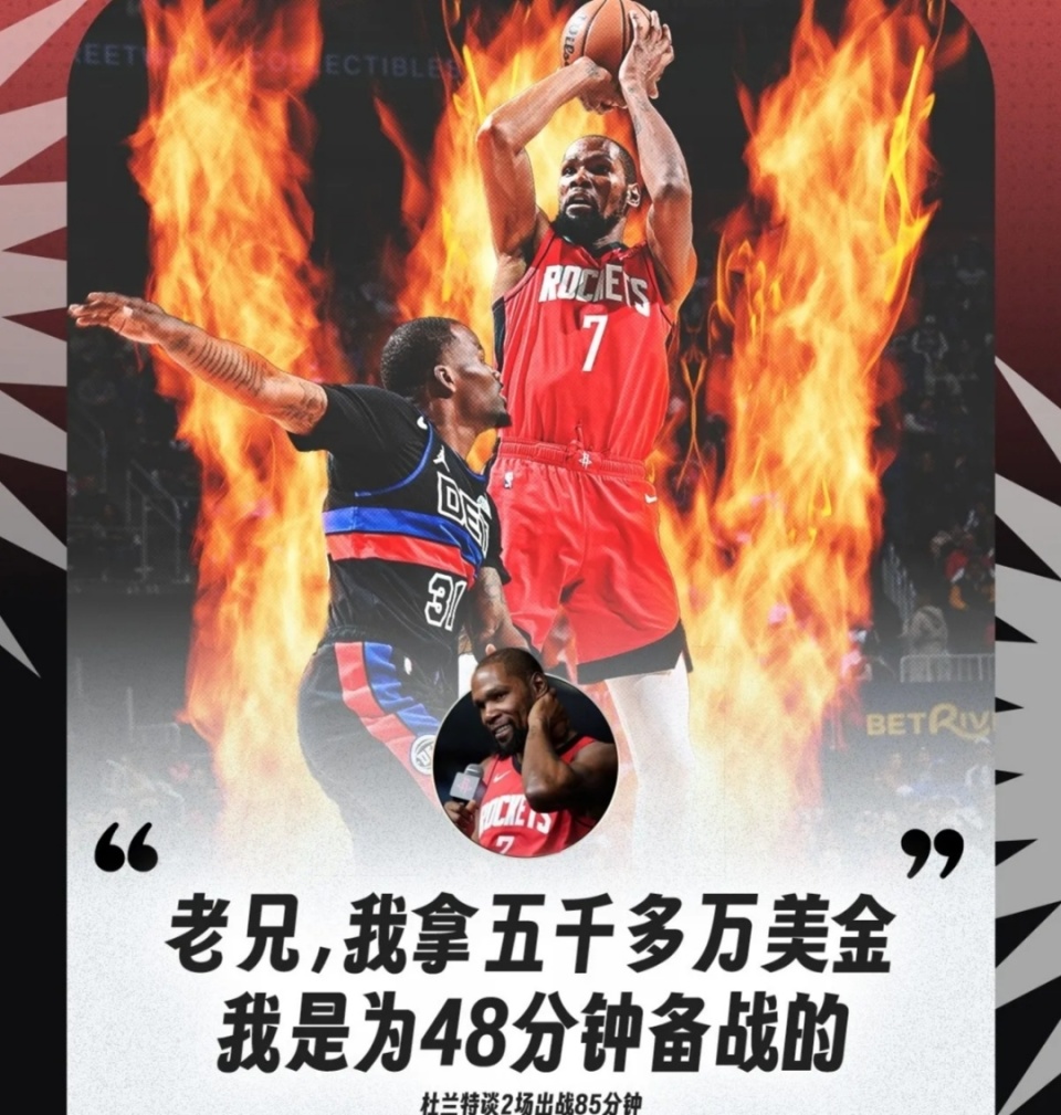 拿钱是真干活,杜兰特称五千万年薪就要打48分钟,敬业精神没得说