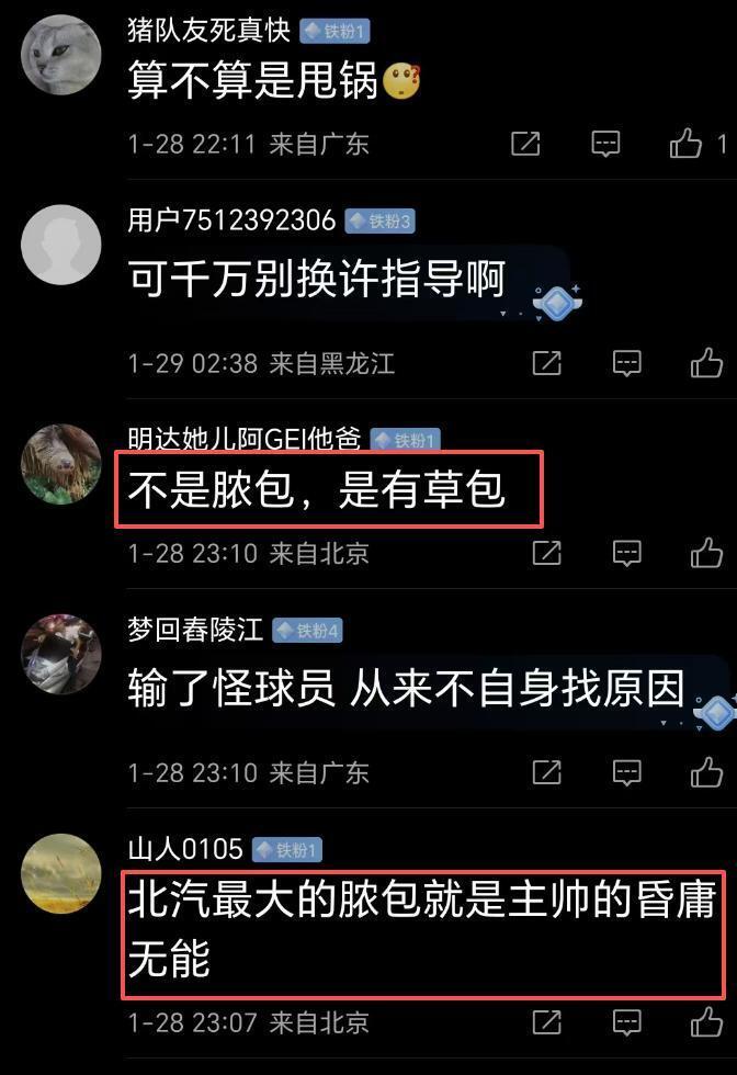 球迷说:“一天天的阴阳别人,自己没能力带领好,这些话说一两次暗示挺好,一直说不太好”、“不是脓包,是草包”、“北汽最大的脓包就是主帅的昏庸无能”。显而易见,这次球迷并不同情许利民,最大的脓包正是他自己。球迷直言,“要点脸的话自己赶紧辞职。球队最大的问题就是你许利民”。