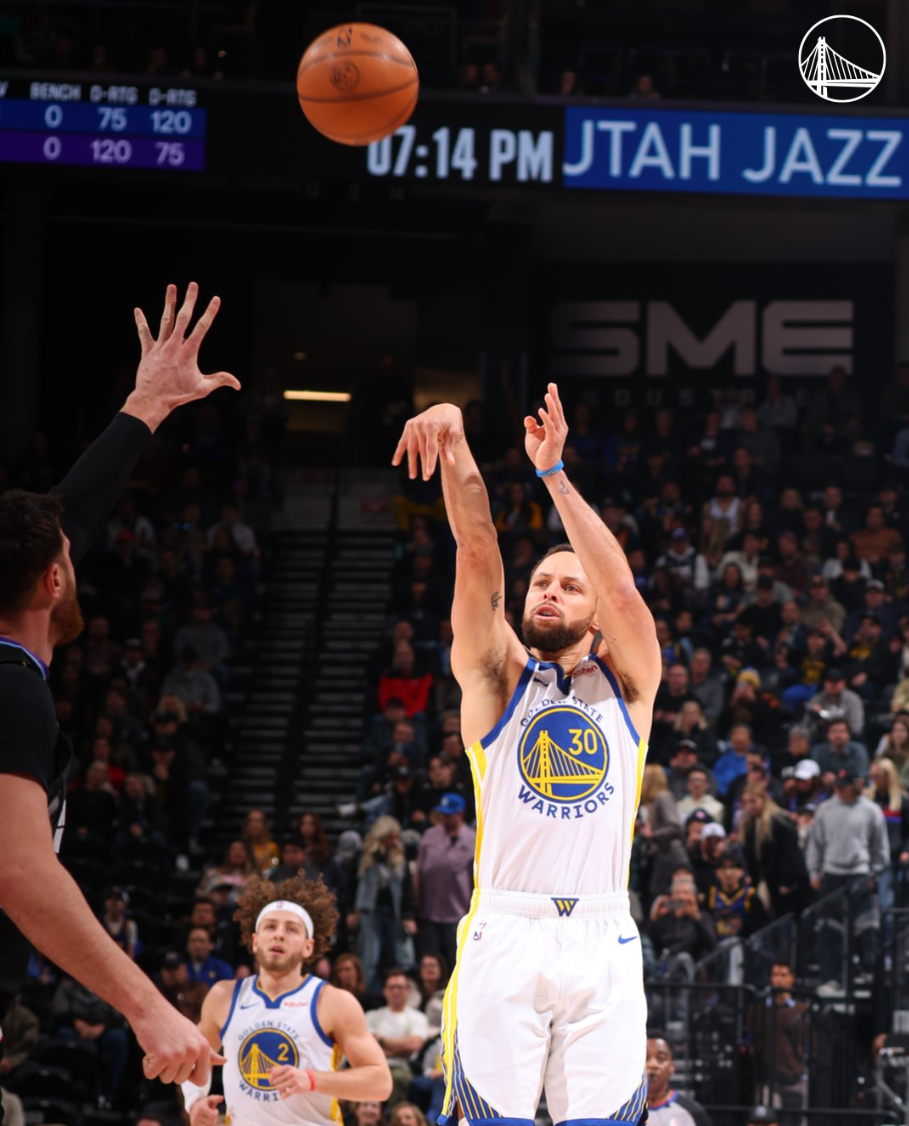 库里27分总得分超皮尔斯!勇士8人上双23记三分大胜爵士 李凯尔6+6