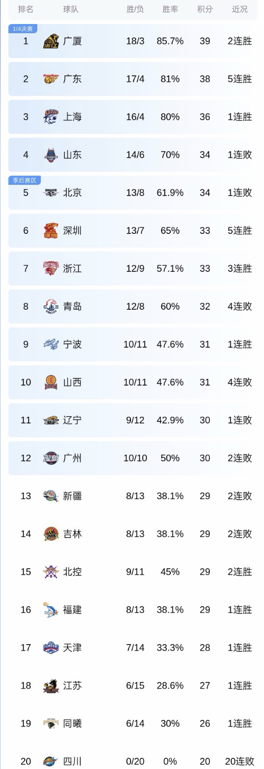今晚辽宁、广州以及新疆,均遭到爆冷。在目前的CBA排行榜上,广厦重返第1。