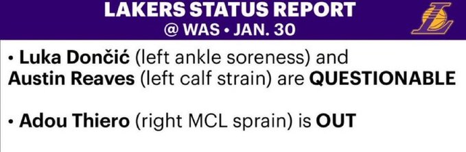 虽然状态同为出战成疑,但对湖人来说显然是一喜一忧。里夫斯缺阵已经有5周,如今状态终于升级,复出有望,对于湖人的进攻来说是一大提升。但里夫斯接近回归,东契奇却受到伤病困扰。他是在昨日惨败骑士的一战中左踝受伤,东契奇首节一次后撤步出手,因球馆地板落差问题,而摔出场外。