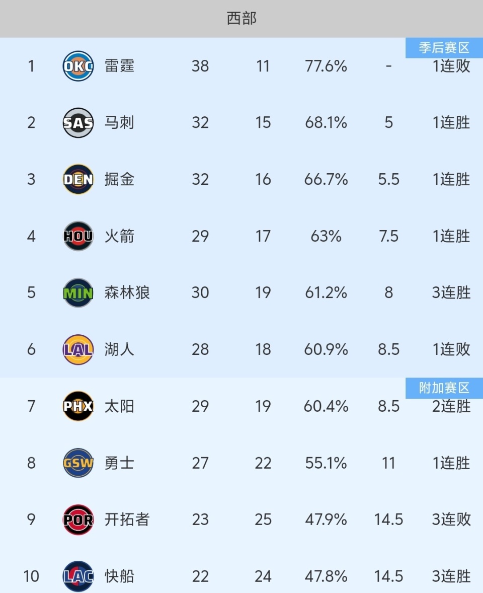 随着森林狼123-111大胜,火箭掘金赢球,NBA积分榜:西部2-7名乱套了!