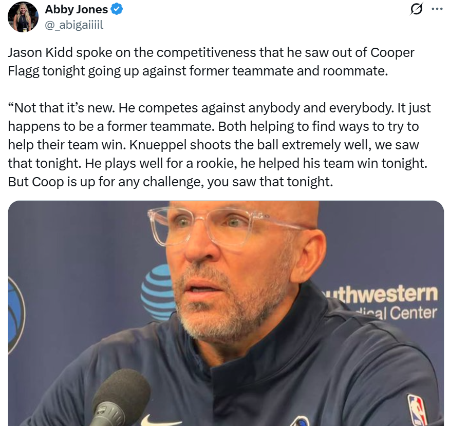 除此之外,基德称赞了最终送出准绝杀的克努佩尔:“克努佩尔的投篮投射太出色了,今晚我们见识了这一点,他的表现十分亮眼,也为球队赢球立下了汗马功劳。”