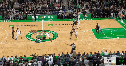 依旧被塔图姆奔袭摆脱后接斯玛特弧顶传球完成扣篮。