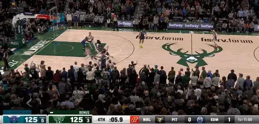 上图,黄蜂在防守时,选择完全放空后3/4场的字母。字母冲到前场后,接球迎着防守人碾压上篮完成终结。