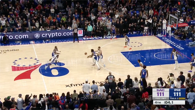 随后,恩比德上提弧顶接球。恩比德接球后,后3/4场的马克西立刻奔袭到前场接球完成进攻。