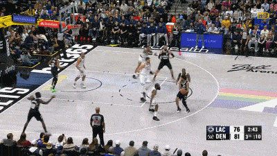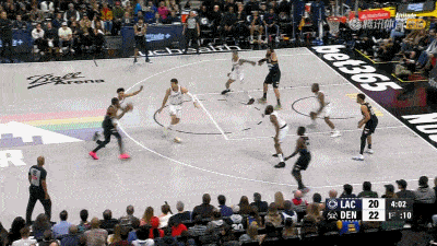 末节决战,哈达威命中三分扩大到15分领先。桑德斯一人打出8-2进攻高潮缩小分差,莱昂纳德连得5分缩小到4分。哈达威三罚全中,莱昂纳德和约基奇先后两罚全中,约基奇随后连得4分重新拉开到11分。莱昂纳德和约基奇先后投篮得手,布朗连续命中罚球,沃特森暴扣扩大到16分。祖巴茨两罚中一后,约基奇命中三分,米勒和穆雷先后得手,掘金队领先到18分,随后快船队和掘金队先后撤下主力,最终掘金队主场击败快船队。