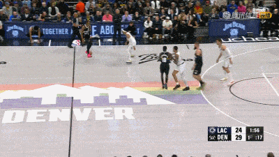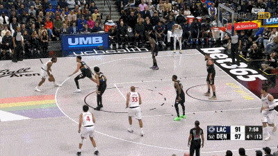 次节比赛,瓦兰投篮得手,巴图姆命中三分,哈达威两罚全中后,莱昂纳德和瓦兰相继得手。约基奇命中罚球,哈登连续命中两记三分缩小分差,之后沃特森和哈登先后命中三分。哈登造犯规两罚全中,斯特劳瑟命中三分后,科林斯一人连得5分,瓦兰打成2+1,穆雷命中三分后,快船队50-59落后掘金队结束上半场比赛。