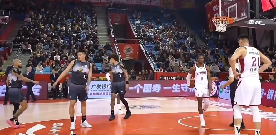 山西男篮从第三节后半段开始,潘江直接启用了全华班,比赛也彻底变成了练兵时间。