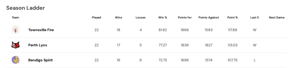 本场卡位战对决当中,珀斯山猫女篮首节23-26落后3分,双方第二节单节维持22-22,上半场结束珀斯山猫女篮45-48落后。易边再战,珀斯山猫女篮攻防碾压对手,第三节28-10净胜18分,第四节15-6再赢9分,最终珀斯山猫女篮88-64大胜本迪高精灵女篮升至联赛第二。