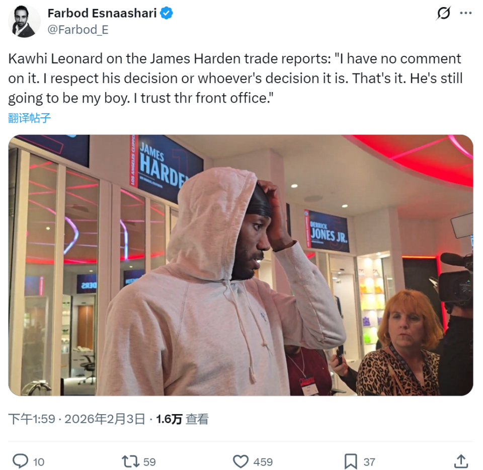 北京时间2月3日,NBA常规赛:快船主场113-128不敌76人,赛后伦纳德接受媒体采访,记者连续抛出哈登申请交易的问题,小卡回答:“我尊重哈登的决定,他依然是我兄弟。你们难道没有关于比赛的问题吗?我不想一直谈这个。”